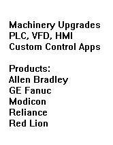 We specialize in: HMI, PLC, VFD, Control Cabinets, Panel Upgrades, Custom Panel Building, Customized Process Control Applications, and Machine Modifications.